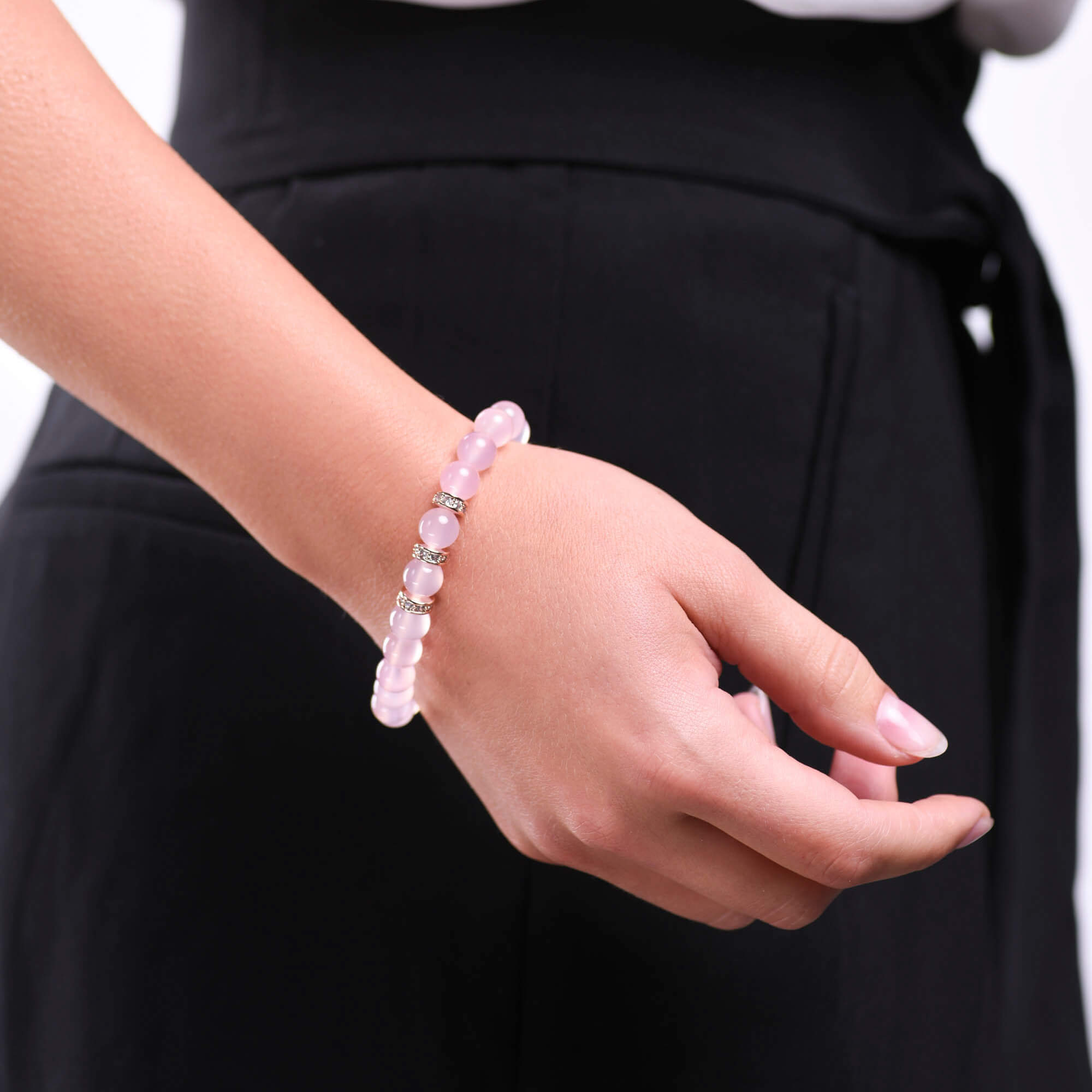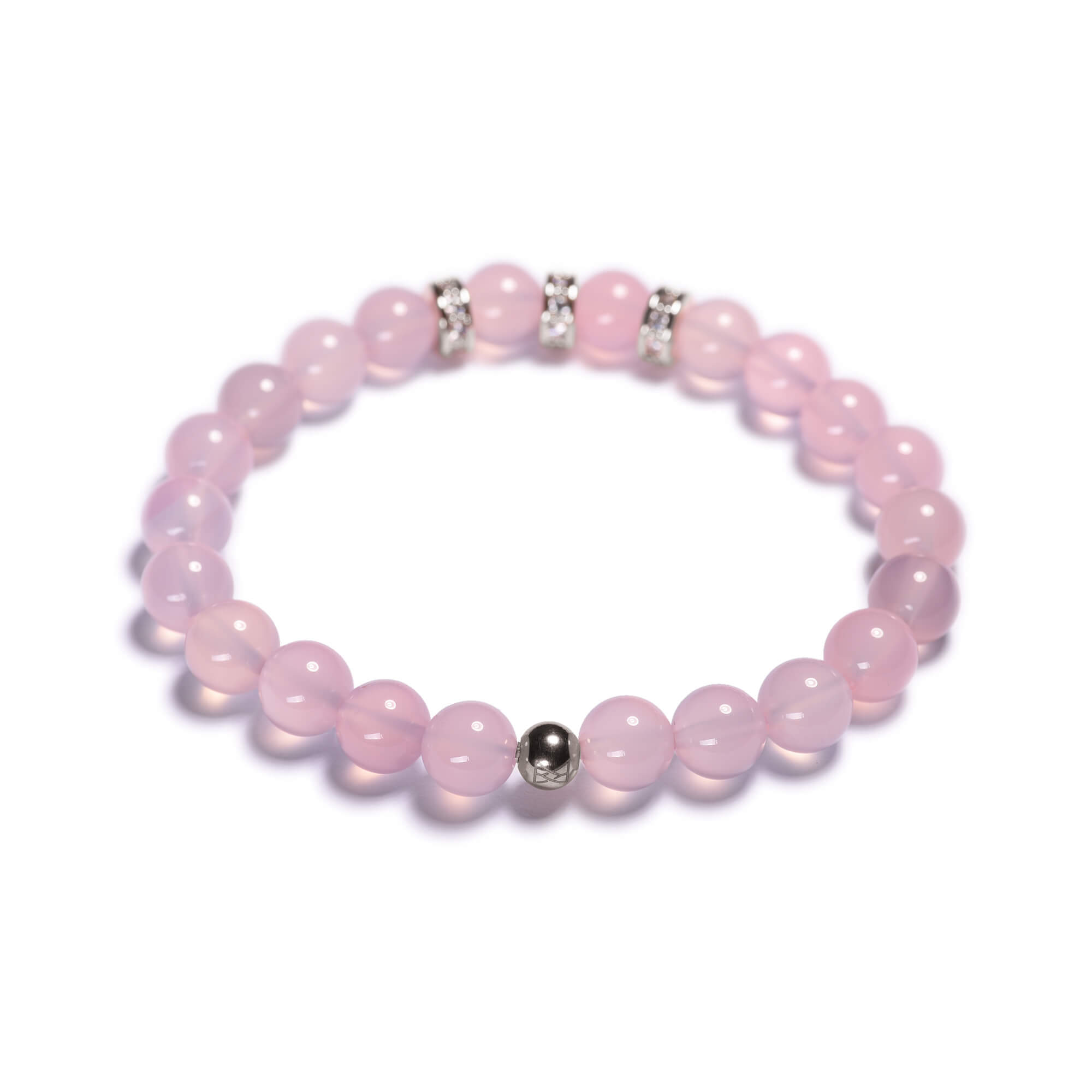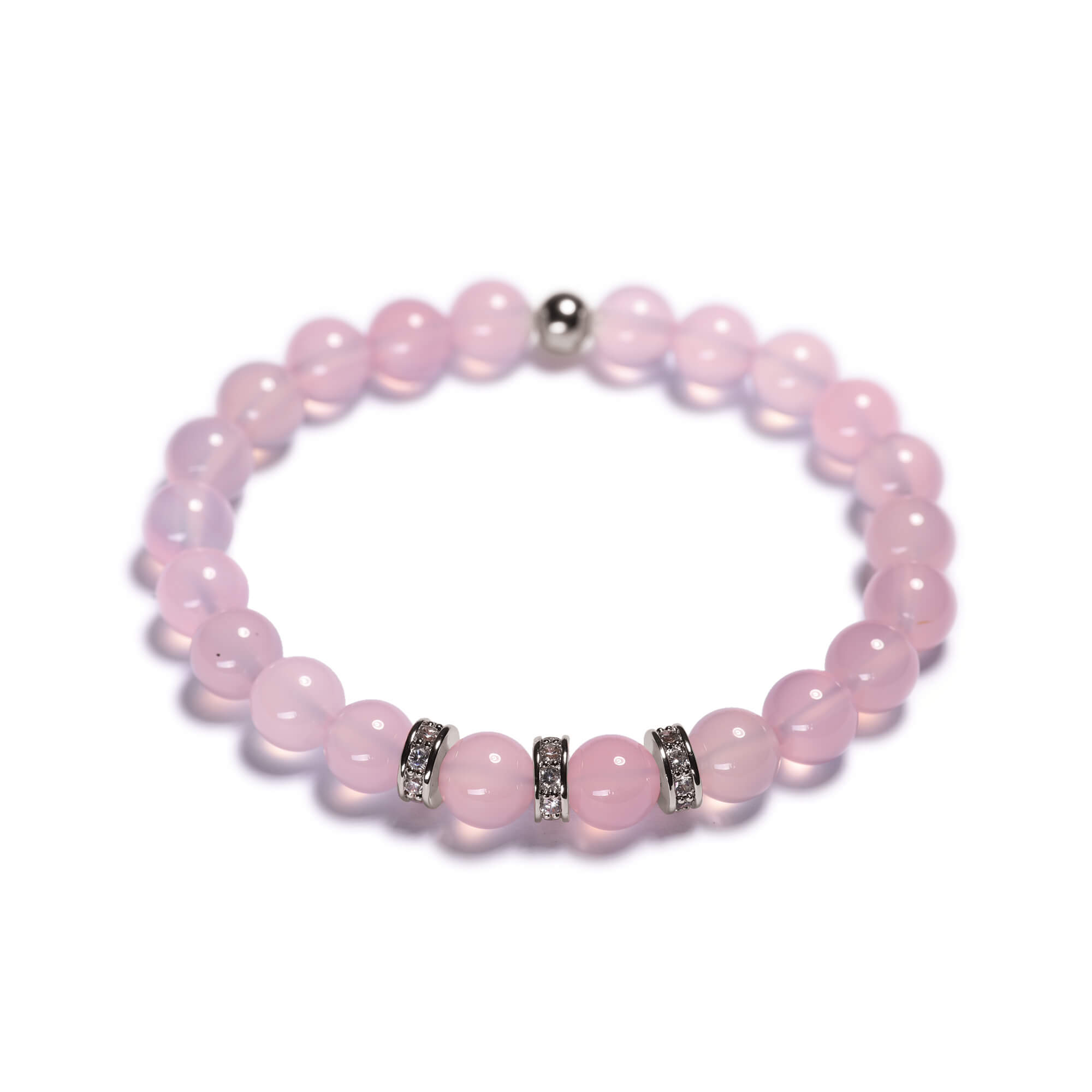 Chalcedonová krása ukrytá v tomto náramku okouzlí každou ženu, která miluje jemně růžové tóny a romantické motivy. Něžný náramek, jako stvořený pro éterickou vílu, jsme navrhli pro všechny ženy, které milují ženskost, líbí se jim originální doplňky a nikdy nezapomenou svůj outfit doladit k dokonalosti krásným šperkem.
