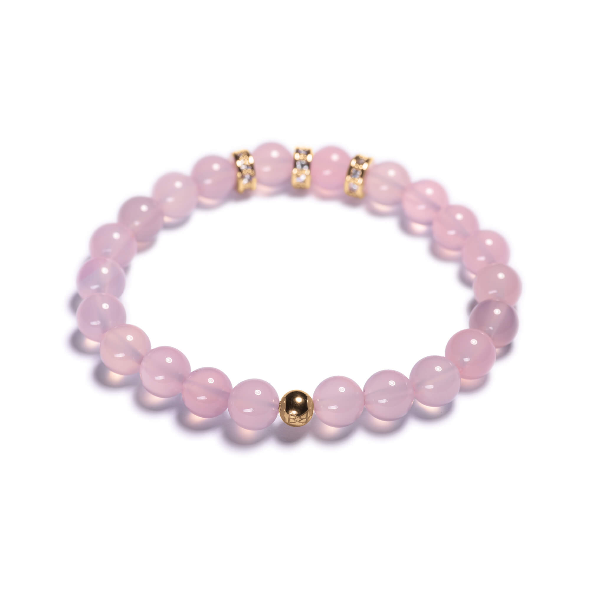 - Kvalitní ručně vyráběný dámský korálkový náramek z přírodního růžového chalcedonu.