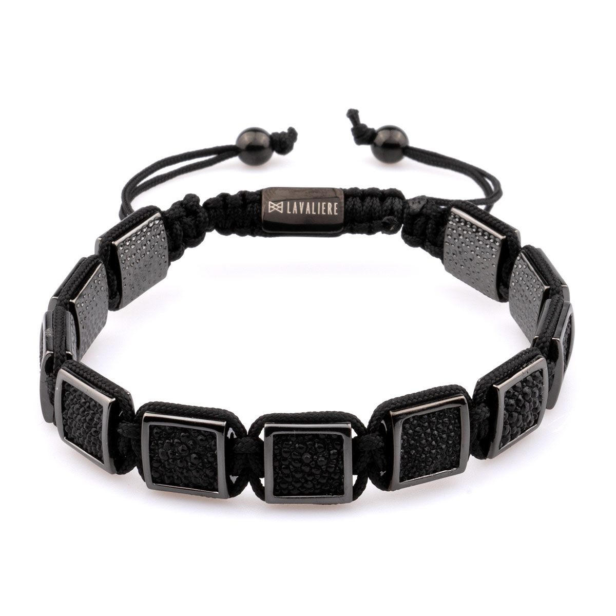 - Kvalitní, ručně vyráběný náramek z chirurgické oceli a imitace rejnočí kůže šetrná ke zvířatům.